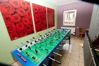 Das Platzangebot des Hauses ist sehr großzügig, wir kamen mit 8 Erwachsenen und 7 Jugnedlichen gut zurecht. Jedoch ist eines der fünf Zimmer noch im Rohbauzustand und ohne Waschgelegenheit. Duschen gibt es in 3 Zimmern, keine Etagendusche. Nach Fertigstellung der Zimmer und Einbau der restlichen Zimmerduschen gerne wieder.