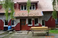 Für Gäste aus aller Welt, die politische, kulturelle Seminare veranstalten, oder auch nur Urlaub machen wollen.Der Gästebereich besteht aus zwei Häusern, in denen zusammen 23 Betten in 8 unterschiedlich großen Zimmern vorhanden sind. Es gibt zwei Küchen, zwei Gruppenräume und drei Badezimmer. Auf einen besonderen Komfort haben wir bewusst verzichtet. Zum Gästehaus gehört ein großer Saal. Das Haus ist gleichzeitig eine ständige Kunstgalerie, in der die Künstlerinnen der Gemeinschaft ihre Exponate ausstellen.