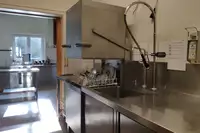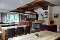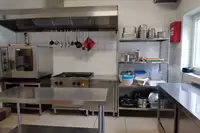 Die beiden großen Ess- und Aufenthaltsräume im Erdgeschoss mit Elektrokamin, voll ausgestatteten Spielecken, 2 Tischkickern, Billiard und Bose Musikanlage bieten ausreichend Platz zum gemeinsamen Verweilen.Die große Gewerbeküche ist sehr gut eingerichtet und verfügt u. a. über: