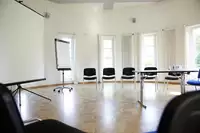 18 Zimmer, als Doppel- und Einzelzimmer nutzbar, größtenteils mit eigenem Bad 3 Seminarräume: runder Seminarraum (60 m²) mit besonderem Flair, Seminarraum (50 m²), Seminarraum (20 m²), 4 Meta-Plan-Wände, Flip-Chart, Beamer, Fernseher, Stereoanlage, W-LAN kostenfrei, Meditationskissen, Yogamatten, Garten, individuelle Gastronomie, 20 ParkplätzeFreizeit