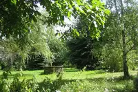 Eine Parkanlage / Naturteich mit Feuerstelle und Tipi; ein Schwitzhüttenplatz und die angrenzende Aroniaplantage, laden zum Verweilen ein.
