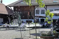 Der Gewölberaum kann mit Tischen und Stühlen für 120 Personen eingerichtet werden. Bei schönem Wetter haben Sie die Möglichkeit draußen zu feiern. Biertische und Bänke für 180 Personen sind vor Ort. Wenn Sie es rustikaler mögen, ist unsere Eventscheune der richtige Platz zum zünftigen Feiern.
