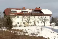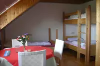 Wohnung im Dachgeschoss mit Küche, Seminarraum /Gruppenraum /Kaminzimmer 2 x WC, Bad. Dusche + EG Sanitärbereich, 10 Betten