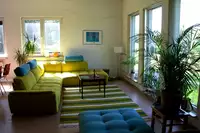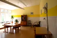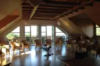 Ein Seminarhaus mit Gästezimmern und großer Küche/Speiseraum und Wohnzimmer. Mehrere Seminarräume, auch in anderen Häusern in unmittelbarer Nähe. Großer, historischer Gymnastiksaal mit edlem Holz-Schwing-Boden.Professionelle Großküche im Nebenhaus.