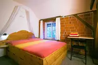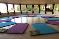 Auf der ersten Etage des Gästehauses sind sechs Zimmer. Hier befindet sich auch der Seminarraum (Yogaraum). Diese Kombination von Zimmern und dem Yogaraum ist besonders geeignet für kleine Gruppen, die ganz ungestört sein wollen.