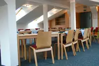 Außerdem stehen Ihnen verschiedene Gruppen- und Tagungsräume für ca. 20 bis 65 Personen zur Verfügung. Zur Ausstattung gehören auch Medien wie elektronisches Whiteboard, Flip-Chart, Klavier, E-Piano, Pinnwand, (Beamer). Eine geräumige Sporthalle mit Tischtennisplatte, Fußballkicker und Billard, Lagerfeuerstelle und Grillgelegenheit bieten vielfältige Beschäftigungsmöglichkeiten.