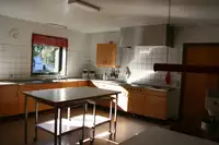 Es gibt eine gut eingerichtete SV-Küche mit: