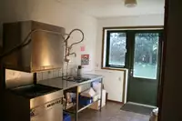 Moderne Haushaltsküche mit mehreren Öfen, reichlich Kochgeschirr und Service, Thermoskannen, einer Spülmaschine in separaten Spülraum,einer Kühltruhe, eine Waschmaschine etc. etc.