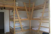 Es gibt 18 Betten (dreistöckig), die auf 3 Zimmer aufgeteilt sind. Hinzu kommt eine Selbstversorgerküche, Wohn- und Esszimmer und ein Duschbereich mit drei Duschen für alle. Hinzu kommen ein Badezimmer für Frauen und eins für Männer. Zusätzlich gibt es zwei kleine Flurtoiletten. Das Haus verfügt über kostenloses W-LAN.Freizeit