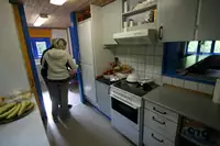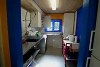 Es gibt eine gut eingerichtete SV-Küche mit: