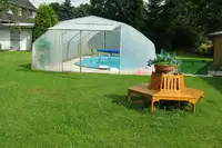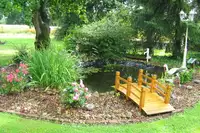 Großer Garten, Spielwiese, Kinderspielplatz, Sandkasten, Schaukel, Lagerfeuerplatz, Grillplatz, Grill, Außenkamin, Schwimmbecken, hauseigener Angelteich, Fußballfeld, Fahrräder, Reitplatz in der Nähe, Wandern, MuseenAusflugsziele