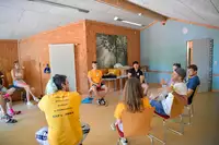 Verschiedenste Sport- und Spielanlagen, Indoor-Kletterwand (7 Meter), Bouldermöglichkeiten, Kleinfeld-Spielplatz (20x40 Meter, Tartanboden) für Fußball, Tennis, Volleyball, Badminton, Hockey, Basketball, Beachvolleyballfeld, 3 Tischtennisplatten, Badeteich, Grillhütte und offene Grillstelle, Sonnenterrasse und Liegewiese, Seilbahn, verschiedene Schaukeln und Spielgeräte, Abenteuer- und Teamstationen, Seilhang-Ninjaparcour, Bogenschießplatz uvm.Das Camp liegt im idyllischen Breitenbachtal bei Vöhl/Harbshausen am Ufer des Edersees. Es ist ein idealer Ort für Gruppen aus den Bereichen Sport, Jugendarbeit, Schule und Umweltbildung.