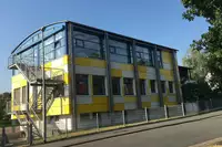Die Lehrstätte liegt inmitten eines Sportzentrums zu dem eine Freianlage mit Rasenplätzen und Laufbahn, mehrere Sporthallen sowie ein Hallenbad mit Saunabetrieb - alles im Umkreis von ca. 400m - gehören.