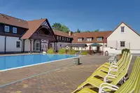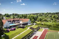 Kunstrasenplatz 95 m x 55m, Tartan-Rundlaufbahn mit Leichtathletikanlagen, Beachvolleyballplatz, Sporthalle 30 m x 15 m, Gymnastikhalle 200 m² , Freischwimmbecken, Sauna, 3 Seminarräume für 20 Personen, 1 Seminarraum für 25 Personen, 1 Seminarraum für 40 Personen, 1 Konferenzsaal für 100 Personen, Overhead, Pinwand, Whiteboard, Beamer, TV, Video, DVDFreizeit