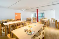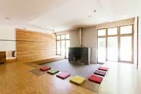 Saal für bis zu 200 Personen, Bistro mit Bewirtschaftung, Werkraum, Gymnastikraum, Kaminzimmer, Meditationsraum, Beamer, Tagungsmedien, Flip-Charts, Moderationswände, W-LAN im Bistro und Tagungsräumen, Fotokopierer, Fernsehgerät, Videorecorder, Tischtennisplatte, Fußballkicker, E-Piano, Gesellschaftsspiele. Bettwäsche wird vom Haus bereitgestellt und ist im Übernachtungspreis enthalten.Freizeit