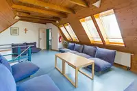 Kapelle, Tagungsräume, Werkraum, Klubräume mit Büchern und Gesellschaftsspielen, Beamer, Fotokopiergerät, Stereoanlage, Ballspiele, Tischtennisplatte, Fußballkicker, Klavier 10 AutoparkplätzeFreizeit