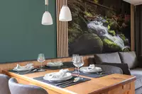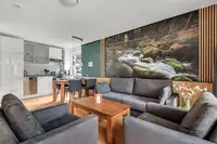 Jede Wohnung besitz eine eigene, voll ausgestattete Küche, sowie Badezimmer mit Dusche. Für gemütliche Abende auf der Couch steht in jeder Wohnung ein 58 Zoll Smart TV zur Verfügung.