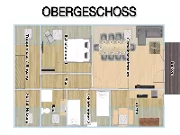 1 Große Wohnung mit 3 Schlafzimmern, Küche, Balkon und großem Wohnzimmer als Gemeinschaftsraum, sowie großem Spielbereich für Kinder im Dachgeschoss.