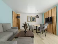 1 Wohnung mit Schlafzimmer, Wohn- und Esszimmer mit Terrasse und Bad mit Dusche