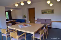 Für unser Familientreffen haben wir das Selbstversorgerhaus gemietet: ideal! Ein sehr gut eingerichtetes Haus mit vielen guten Bädern, freundliche Möblierung. Küche und Aufenthaltsraum sehr gut. Es ist ein sehr schnell arbeitender Getränkekühlschrank vorhanden! Bei sonnigem, warmem Wetter saßen wir bis in die Nacht auf den schönen Plätzen ums Haus herum. Das Haus stellt Bierbänke, Gartenstühle und einen großen Grill bereit - eine Idylle. Für die Kinder gibt es einen Spielplatz, einen Fußball- und einen Basketballplatz und sehr viel Raum für wilde Spiele! Wir würden gerne auch mehr als 5 Punkte geben! Sehr gut plus!