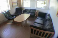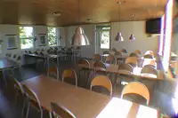 Es gibt insgesamt 11 Schlafräume mit jeweils 4 Betten. Drei Zimmer sind etwas größer als die restlichen 8 Zimmer und eignen sich gut als Betreuerzimmer. Die Betten sind jeweils Etagenbetten.Gut ausgestattete Küche: 2 elektrische Haushaltherde, ein 180 cm großer Kühlschrank, ein 180 cm großer Gefrierschrank, 1 professionelle Kartoffelschälmaschine, 1 Gewerbespülmaschine, ausreichend Töpfe, Pfannen und Geschirr (für 48 Pers.). In einem Nebenraum befindet sich eine Waschmaschine.