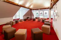 Meditationsraum, Bistro, Beamer, Moderationskoffer, Samsung Flip Boards, Fotokopiergerät, Fernsehgerät, Flipchart, Stellwände.Ausflugsziele