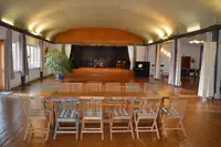 Großer Saal mit Bühne, große Selbstversorgerküche, Meditationsraum, Overheadprojektor, Beamer, Fernsehgerät, Videorecorder, Stereoanlage, Flipchart, DVD- Player, Pinnwände, 2x3 Meter Leinwand, 1,5x1,5 Meter Leinwand, Mischpult, Verstärkeranlage, Studioboxen, 2 Klaviere, 15 Autoparkplätze. Grundrisse mit Bildern auf unserer Internetseite.Freizeit