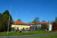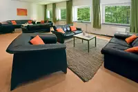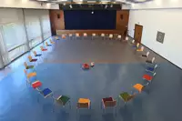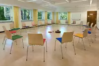 Theatersaal (230 m²) mit Bühne und Außengelände für Großveranstaltungen und mehrere kleine bis große Seminarräume (42 m² bis 73 m²), zwei Küchen für Selbstversorgergruppen bis max. 20 Personen