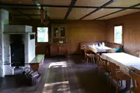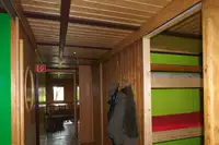 Die Hütte selbst verfügt über 15 Betten in drei Räumen (2x6 Betten, 1x3 Betten), eine voll ausgestattete Küche und einen großen Aufenthaltsraum mit Kachelofen. Es gibt zwei Toiletten, zwei Waschräume und eine "Freiluft-Dusche". Elektrischer Strom ist nicht vorhanden, aber fließend kaltes Wasser. Herd und Kühlschrank werden mit Gas betrieben. Der Kachelofen wird mit Holz beheizt. Geeignet auch für Familienfreizeit. Der Zeltplatz ist erfahrungsgemäß für Gruppen mit bis zu 50 Personen ausreichend.Freizeit