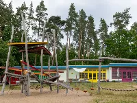 Hinter den Bungalows befindet sich ein Spielplatz.
