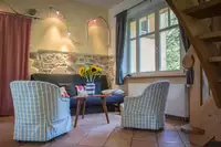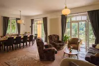 Das Haus ist ein ehemaliges Hotel aus dem 20. Jahrhundert. Es wurde 2008 komplett restauriert und dient seitdem als Unterkunft für Familienzusammenkünfte, große Geburtstage, goldene Hochzeiten, Seminare und Kurse.Ein großer Raum im Erdgeschoss ist ideal, um gemeinsam zu kochen, zu essen, Seminare abzuhalten und vor einem schönen Kaminfeuer romantische Stunden zu verbringen. Die Villa Louisental besitzt 7-8 Schlafzimmer. Ein Aufenthaltsraum mit Küche im oberen Stock kann als Rückzugsraum, zusätzlicher Schlafraum benutzt werden oder als TV-Raum.