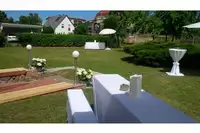 Unsere Familie hatte eine Geburtstagsfeier in dem unteren Teil des Gebäudes. Wir, eine kleine Familie mit zwei Kindern, mieteten uns für die Nacht der Feier in der Etage darüber ein. Für eine große Zusammenkunft ist der untere Partyraum ideal. Die Gäste hatten genug Platz zum Essen und Tanzen. Zur Abkühlung und für Gespräche konnte man gut durch den Garten spazieren. Besonders gefallen hat uns, dass für die Kinder sogar eine Schaukel und ein Sandkasten aufgebaut war. Alles, auch das Zimmer und Bad, wirken sehr sauber und gepflegt. Sogar Extrawünsche, wie eine individuelle Anreisezeit und die Benutzung der Küche, wurden gewährt. Wir kommen gern wieder.