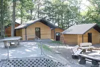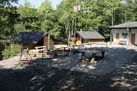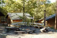 Einfache rustikale Hütten, ruhig am Waldrand gelegen, optimal für Gruppen mit Jugendlichen. Hütten werden nur zum Schlafen gebraucht, der Rest spielt sich an den Feuer- und Grillstellen und im gesamten Waldcamp ab.