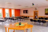 Es war eine sehr schöne angenehme und unkomplizierte Feriengestaltung. Klasse war auch der See und der Wald direkt am der Anlage. Große Küche für Selbstversorger. Wir waren mit 70 Pers. da
