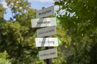 Unser vier Hektar großes Gelände bietet Erlebnisse für alle Sinne. Genießen Sie unsere Garten- und Parkanlage mit einer Vielzahl von Rosen und Rhododendren. Ein Teil unseres Außengeländes wurde zum „Naturgarten“ umgewandelt. Beobachten Sie die Vögel der Hain- und Wiesenlandschaften und die Tiere der angrenzenden Wälder inmitten eines Naturschutzgebietes oberhalb der Sieg.