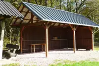 Der Zeltplatz verfügt über einen einfachen Unterstand; vorne offen (ca. 6 mal 4 Meter), einen weiterern Unterstand, nach 2 Seiten offen, als Küchenhaus nutzbar (ca. 5 mal 4 Meter), einen großen überdachten Schwenkgrill, ein einfaches Toilettenhäuschen mit 2 Toiletten, große Lagerfeuerstelle mit Rundumsitzbänken, eine gefasste Quelle (kein Trinkwasser) und einen großen Parkplatz mit Buswendemöglichkeit. Die Wiese kann und darf nicht mit Wohnmobilen u.ä. befahren werden, diese müssen auf dem Parkplatz vor der Schranke geparkt werden.Es gibt keinen Strom!