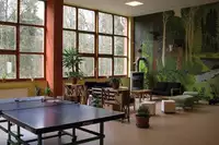 Das WPZ Hahnhorst verfügt über eine Spülküche mit großen Kühlschränken, einer Spülmaschine, Kaffeemaschine und Wasserkocher. Als kleine Kochmöglichkeit steht nur eine mobile Herdplatte mit zwei Kochplatten zur Verfügung. Die Nutzung unserer Großküche ist leider nicht möglich. Als Alternative dazu können ein Grill oder eine Feuerstelle zum Kochen genutzt werden.Ein großer Gemeinschaftssaal lädt zu gemütlichen Abenden am Kamin und geselligem Beisammensein ein. Eine Tischtennisplatte und ein Kicker stehen dort für Sie zur Verfügung.