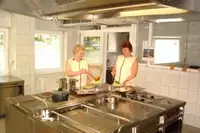 Speisesaal, Küche und Kiosk, Clubraum, Jäger-Zimmer mit Kamin, Münz- Telefon, Mehrzweckraum, Freizeiträume (mit Tischtennis, Kicker, ...). In einem Gebäude auf der anderen Seite des Hofes befindet sich die Lehrwerkstatt.Freizeit