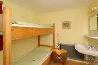 Doppel- und Mehrbettzimmer alle mit Waschbecken, meist Etagenbetten, 2 Leiterzimmer mit DU/WC.