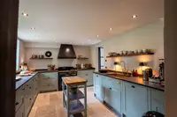 Grosse Mühlenküche mit Falcon-Gasherd, zwei Spülmaschinen, Side by Side Gefrier-Kühlschrank, ECM-Siebträgermaschine, Nespresso & French Press Kannen