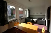 Wir waren hier auf Klassenfahrt. Das Haus liegt direkt neben einem Kindergarten und zwei Familienhäusern mit kleinen Kindern. Es fehlt draußen ein Ort zum Toben, Fußballspielen, Zusammensitzen, da alles sehr eng und nah an den Familienhäusern ist. Das Haus, die Möbel und die sanitären Anlagen sind in die Jahre gekommen. Im Haus sind jedoch viele Gemeinschaftsräume, Kicker, Billardtisch und eine große Küche, so dass wir drinnen eine schöne Zeit hatten.