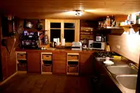 1 x Küche inkl. Gasherd, Holzofen, Herd, Kühlschrank, Kaffeemaschine, Mikrowelle