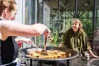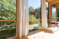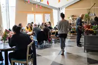 Das Wabenhaus ist das Herzstück unseres 10 Hektar großen Zukunftsortes. Hier beginnt für die Menschen ihr Aufenthalt »in der Zukunft«, hier begegnen sie einander, essen, lernen und arbeiten zusammen. Das Haus setzt sich aus zehn großen sechseckigen Waben zusammen und verbindet auf knapp 1.000 m² Fläche Essens-, Schlaf-, Arbeits- und Seminarbereiche.Das 200 m² große Blumenhaus ist ein Event-Space mitten im Grünen. Das Glashaus bietet im Sommer Räume für Veranstaltungen abseits des Haupthauses. Komplett verglast geht der Blick raus ins Grüne; wenige Meter weiter führt ein Steg in den Bambuswald und lädt ein, in die Natur einzutauchen. Nachts am prasselnden Feuer sitzen und die Welt von morgen erträumen…