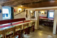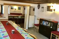 Für kleinere Gruppen oder Familien bis zu 6 Personen stehen im ehemaligen Scheunentrakt ein liebevoll ausgestatteter Aufenthaltsraum, sowie zwei Schlafräume, 1 mit einem Doppelbett, 2 mit 2 Etagenbetten und einer neu eingerichteten Küche und eine separate Dusche, Waschbecken, WC zur Verfügung.