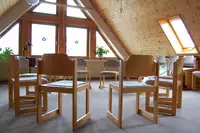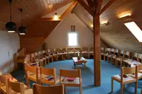 Wir bieten 5 Zimmer mit Dusche/WC, darunter auch 1 Appartement mit Dusche/WC und Küchenzeile an. Insgesamt haben wir 3 Seminarräume für jede Gruppengröße.