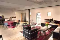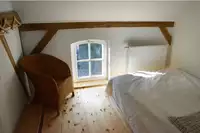 Im Dachgeschoss ist der 70 m² große, helle Yoga- Seminarraum. Ausgestattet mit Matten, Blöcken, Decken, einer Bluetooth Box. Ebenso sind Flipchart und Internet vorhanden. Im hinteren Teil befinden sich drei weitere Schlafzimmer und ein großes Duschbad.