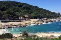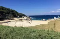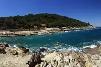 Für Kroatien ungewöhnlich: Eine Badebucht mit Sandstrand befindet sich nur 1 km entfernt. Hier befinden sich auch eine Strand-Bar, an der man kühle Getränke mit Sicht aufs Meer genießen kann und ein Kiosk, an dem man Eis bekommt. Ebenfalls am Wegesrand befinden sich im unregelmäßigen Abstand Bänke mit Blick aufs Meer und auch ein kleiner Platz mit mehreren Bänken - ideal zum Genießen von Sonnenuntergängen.