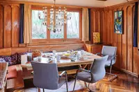 Unser Seminar- und Ferienhaus in Ravensburg bietet ideale Arbeitsbedingungen für Firmen-Events und Retreats. Das Kamin- und Wohnzimmer spiegeln den 50er-Jahre-Unternehmerstil wider: großzügige Räume, edler Marmor, ein Indoor-Blumenbeet und Fischgräten-Waldessparkett. Die Panorama-Fenster bieten einen atemberaubenden Blick über das gesamte Schussenbecken und laden zum Sitzen und Genießen ein. In beiden Räumen können Gruppen von 10 bis 15 Personen hervorragend arbeiten.