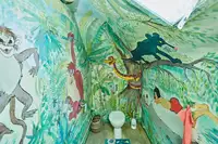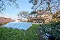 Unsere Familienvilla verfügt über einen Außenpool und einen Whirlpool im Garten, perfekt für entspannte Familienurlaube, Retreats oder Firmenveranstaltungen mit Wellness. Die Bäder im Stil der 50er Jahre verleihen dem Haus einen besonderen Charme.