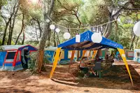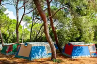 Unter schattenspendenden Bäumen liegt das Camp Veruda Island. Die gleichnamige Insel ist ein Naherholungsgebiet, nur wenige Kilometer vom kroatischen Festland und der historischen Stadt Pula entfernt. Als charmantes Eiland lädt die kleine Insel mit traumhaften Buchten und schattenspendende Pinien nicht nur Kinder und Jugendliche für eine Sommerfreizeit- sondern auch viele Einheimische zu einem Tagesausflug- ein.Das Camp besteht aus Steilwandzelten, die mit einer Bodenplane und zwei Innenzelten ausgestattet sind. In den Innenzelten befinden sich Luftbetten oder Lattenroste mit Matratzen. Die Belegung im Zelt ist für 4 Personen geplant.